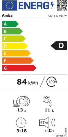 unterbaufähig - Weiß - 13 Maßgedecke - LED Lamp Display Weiß - Startzeitvorwahl, 3/6/9 h - 6 Programme - 5...
