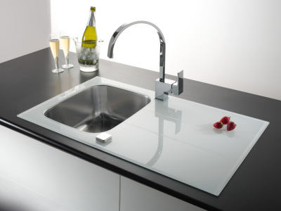 Pyramis Concerto (86x50) 1B 1D Einbauspüle Edelstahl Glas weiß 109501330