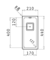 Spülenmaß: 210 x 440 mm Becken: 170 x 400 x 140 mm Unterschrank: 300 mm flächenbündiger Einbau Edelstahl poliert Ventil quadratisch beinhaltet Zubehör: 521205501 Siebkorbventil optionales Zubehör: 521205401 Excenterventil empfohlene Armatur: Pyramis Arioso